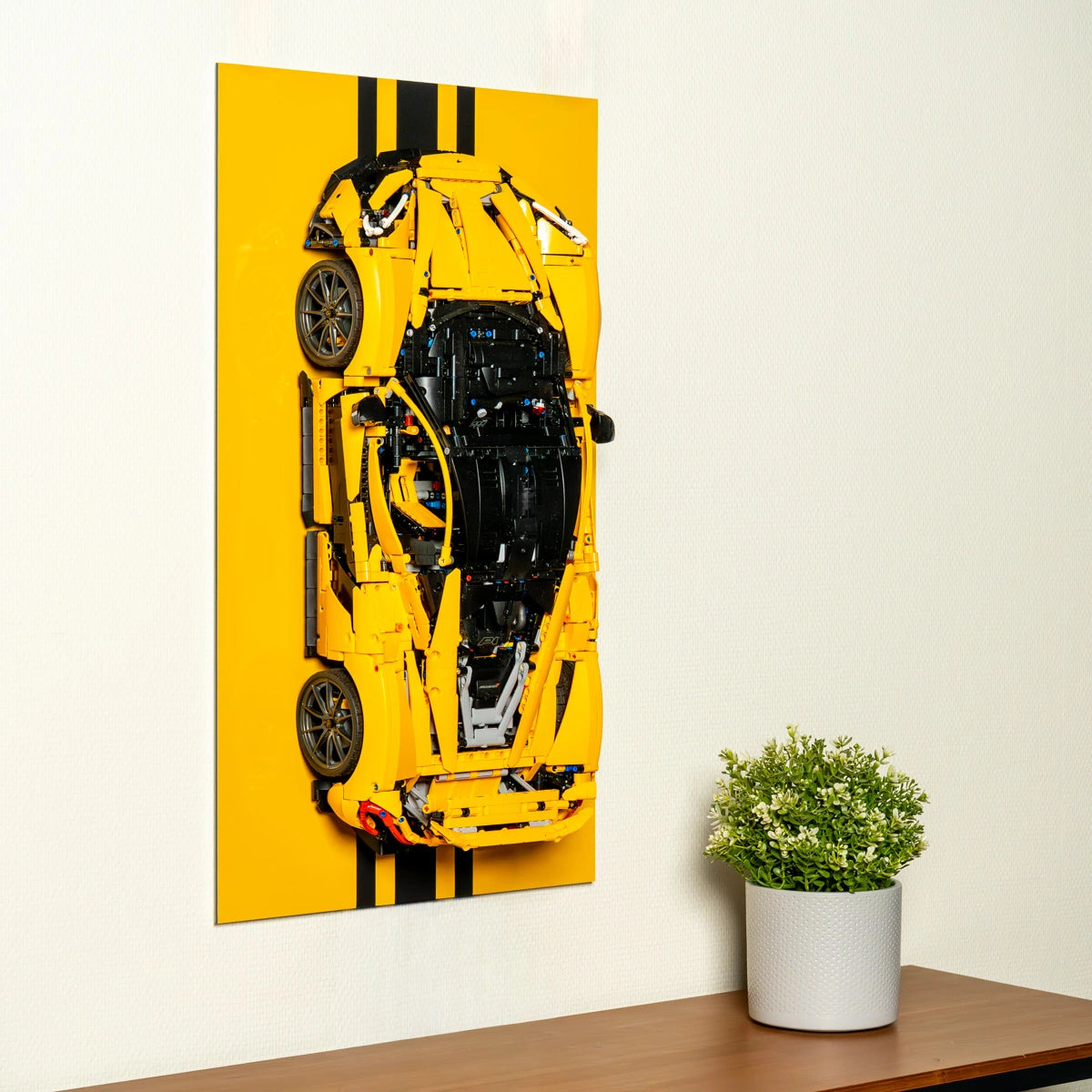Met dit gele display frame haal je het maximale uit je LEGO Technic McLaren P1 set 42172. De opvallende gele kleur sluit perfect aan bij de iconische uitstraling van deze Britse hypercar en zorgt ervoor dat je bouwwerk niet langer op een plank verdwijnt, maar de aandacht krijgt die het verdient. Het frame bestaat uit twee stevige aluminium platen met daartussen een beschermende kunststof laag, waardoor je set veilig aan de muur blijft hangen zonder risico op schade.