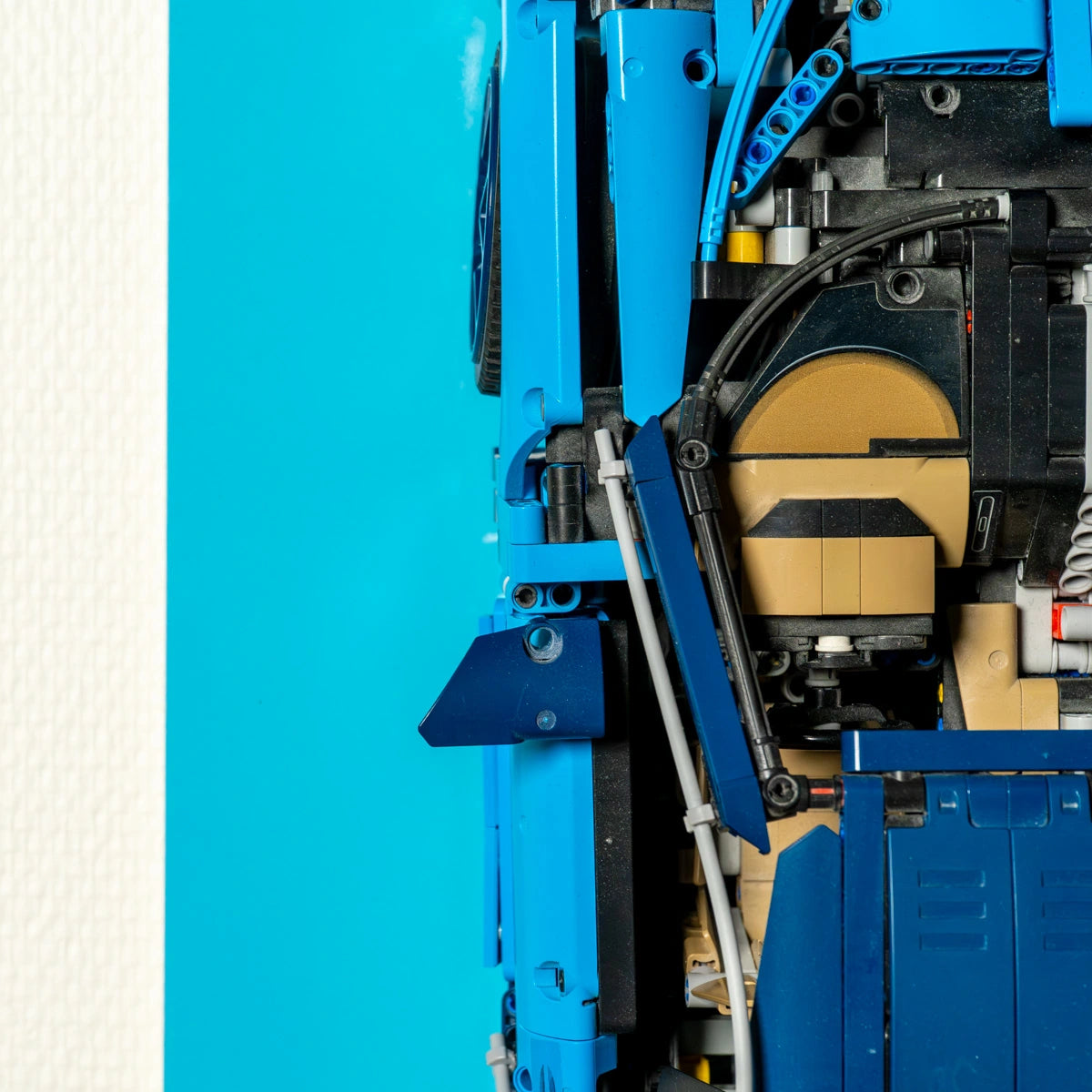 Transformeer je LEGO Bugatti Chiron van bouwproject naar pronkstuk met een blauw display frame dat ruimte bespaart en dagelijks herinnert aan de extreme prestaties van deze Franse hypercar.