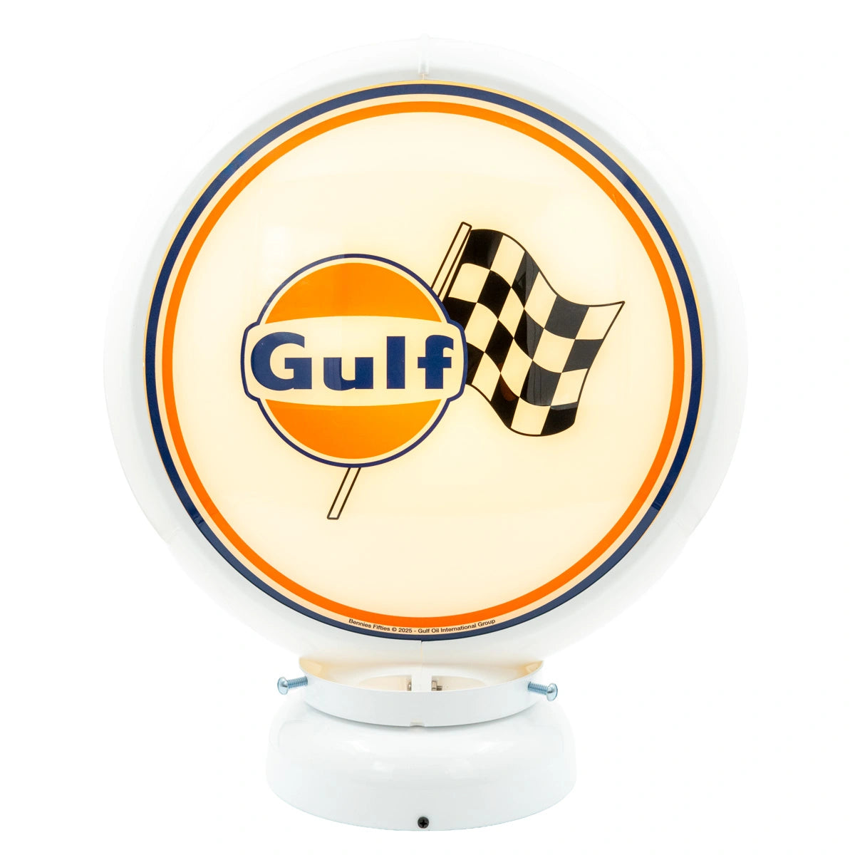 Breng de legendarische Gulf racing sfeer rechtstreeks naar je ruimte met deze authentieke benzinepomp globe die elke dag herinnert aan de gouden tijden van motorsport.