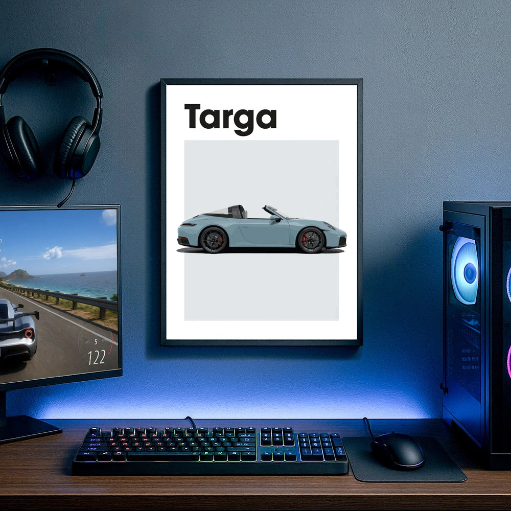 Ontdek de exclusieve Porsche 911 Targa poster van Boldons: een essentiële toevoeging voor iedere liefhebber van klassieke sportwagens. Deze poster is met grote zorg ontworpen en uniek in zijn soort, speciaal afgestemd op het iconische design van de Porsche 911 Targa. Of je nu gefascineerd bent door de elegante lijnen van deze klassieker of gewoon de vrijheid van open rijden waardeert, deze poster vangt de tijdloze charme en stijl van de Porsche 911 Targa perfect.